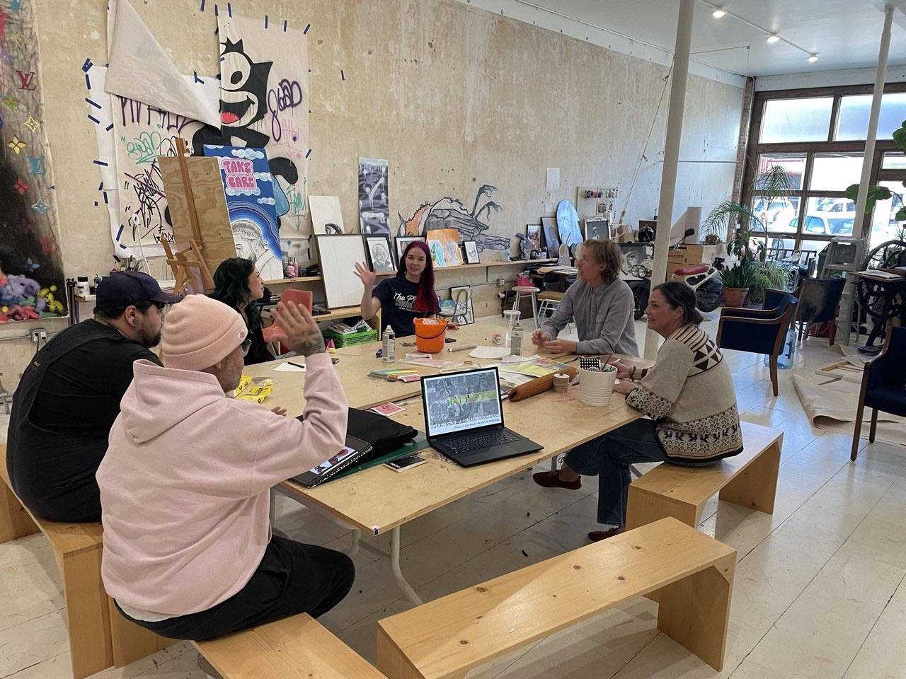 Jason and Meridith Smith moved to Clinton about 20 years ago. They saw opportunity in the old buildings downtown that were selling for $2 a square foot. Jason learned carpentry, bought and renovated his first old brick building, and moved the family in. Later, he and Meridith renovated another building downtown. They filled the first floor with an extensive mix of art supplies and painted “West OK Co-op” on the door. Over time, the space filled with creative types looking for a place to make art and build community.