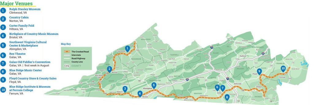 America’s Byways includes 184 nationally designated byways. States and regions also designate byways of their own. One example is the Crooked Road Music Trail.